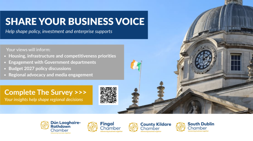 Businesses across Fingal, South Dublin, Dún Laoghaire-Rathdown and Kildare are being invited to share their views on trading conditions, workforce challenges and investment confidence as four Chambers launch a joint Business Environment & Economic Outlook Survey for 2026.