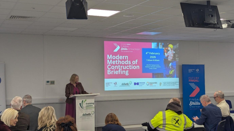 As part of the Future Fingal: Fingal Skills Strategy, Fingal County Council today hosted a Modern Methods of Construction (MMC) Briefing at Baldoyle Training Centre, bringing together industry, education/training and government stakeholders to highlight how education and skills training is supporting innovation in the construction sector and the delivery of the Government’s ‘Delivering Homes, Building Communities’ Plan to deliver 300,000 new homes by 2030.
