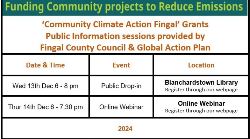 Please visit the webpage to view information on project ideas and guidance https://www.fingal.ie/community-climate-action-fingal, and then email Sinéad Fox at CommClimateActionOfficer@fingal.ie if the group are interested in developing an application.